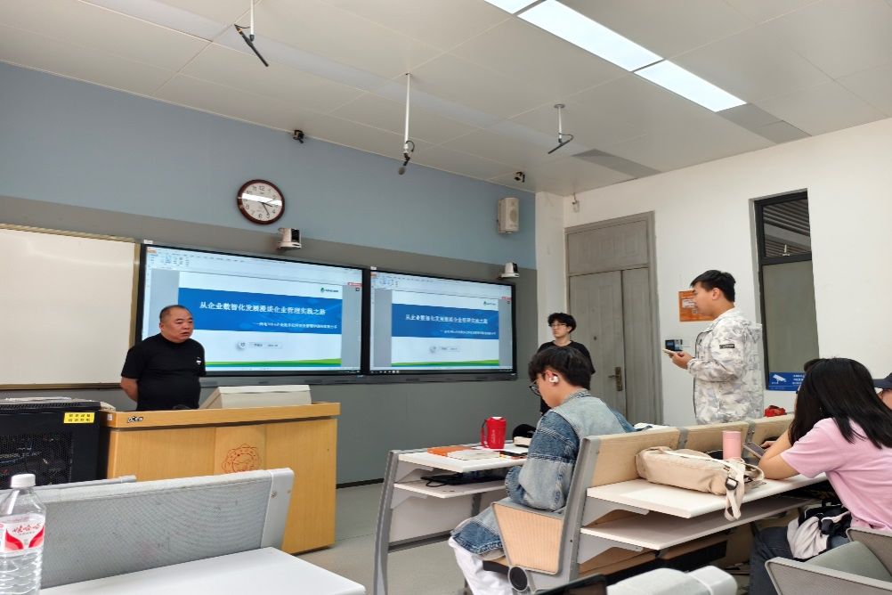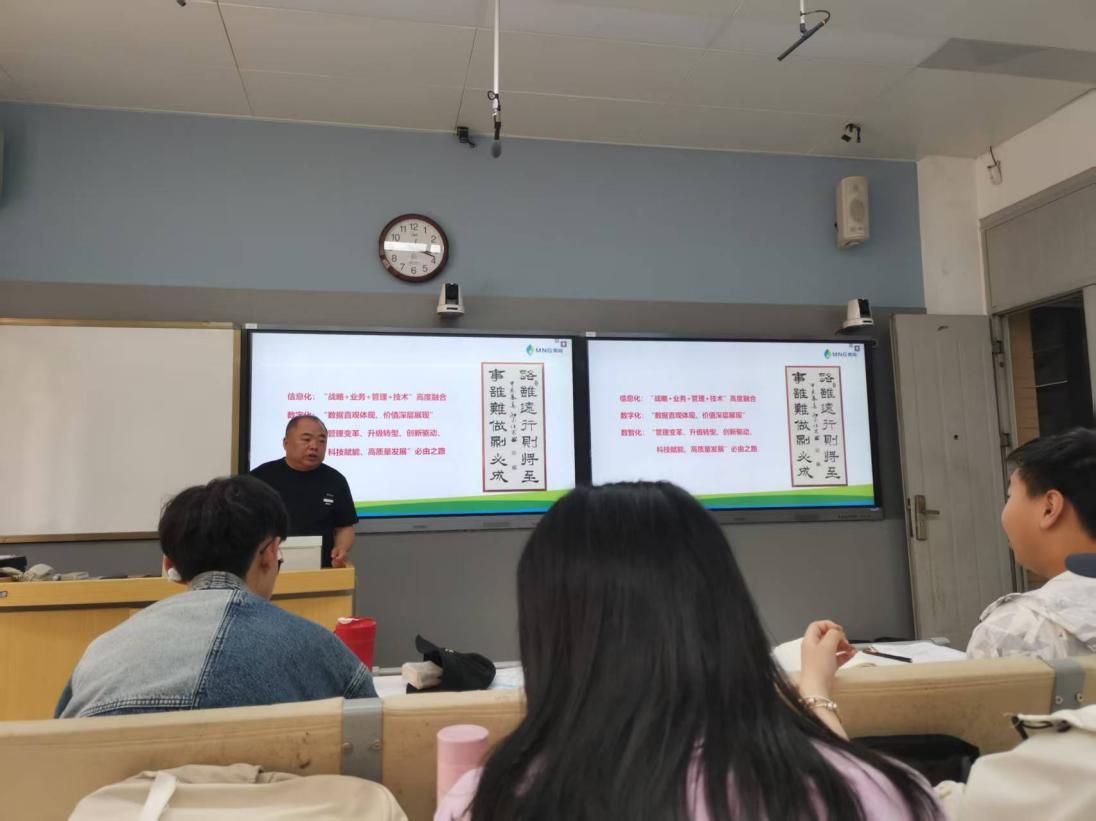 在授课过程中,同学们积极参与互动,就自己感兴趣的问题和疑惑与罗冠东先生进行了深入的交流和探讨。针对同学们提出的“若数智化转型得不到员工支持该如何应对”“作为管理者若不善于沟通该如何处理”等问题,罗先生结合自身丰富的企业管理经验,给予了详细、专业且具有针对性的解答和建议。他指出数智化转型是社会发展的趋势,因此也是企业转型的必经之路。此外,他还告诉同学们沟通是管理者必备的技能,他鼓励同学们保持良好的心态,克服对沟通的恐惧,学会主动沟通。同学们纷纷表示,通过与罗冠东先生的近距离交流和学习,自己不仅对所学专业有了更深入的认识和理解,还对未来的职业发展有了更清晰的方向和目标,收获颇丰。