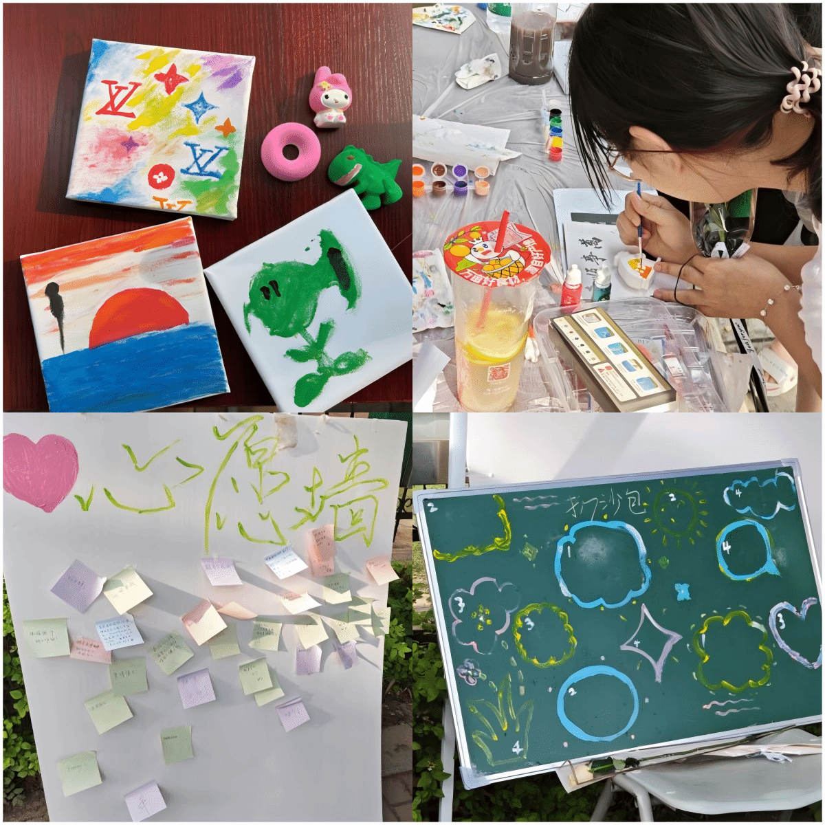 本次“525心理健康节”校园游园会在欢声笑语中落下帷幕。亲手制作的漆扇、彩绘的石膏娃娃,以及写满祝福的心愿贴纸,带给学生的不仅是一次愉快的午后时光,更是一次与自我对话、与他人交流的心灵之旅。