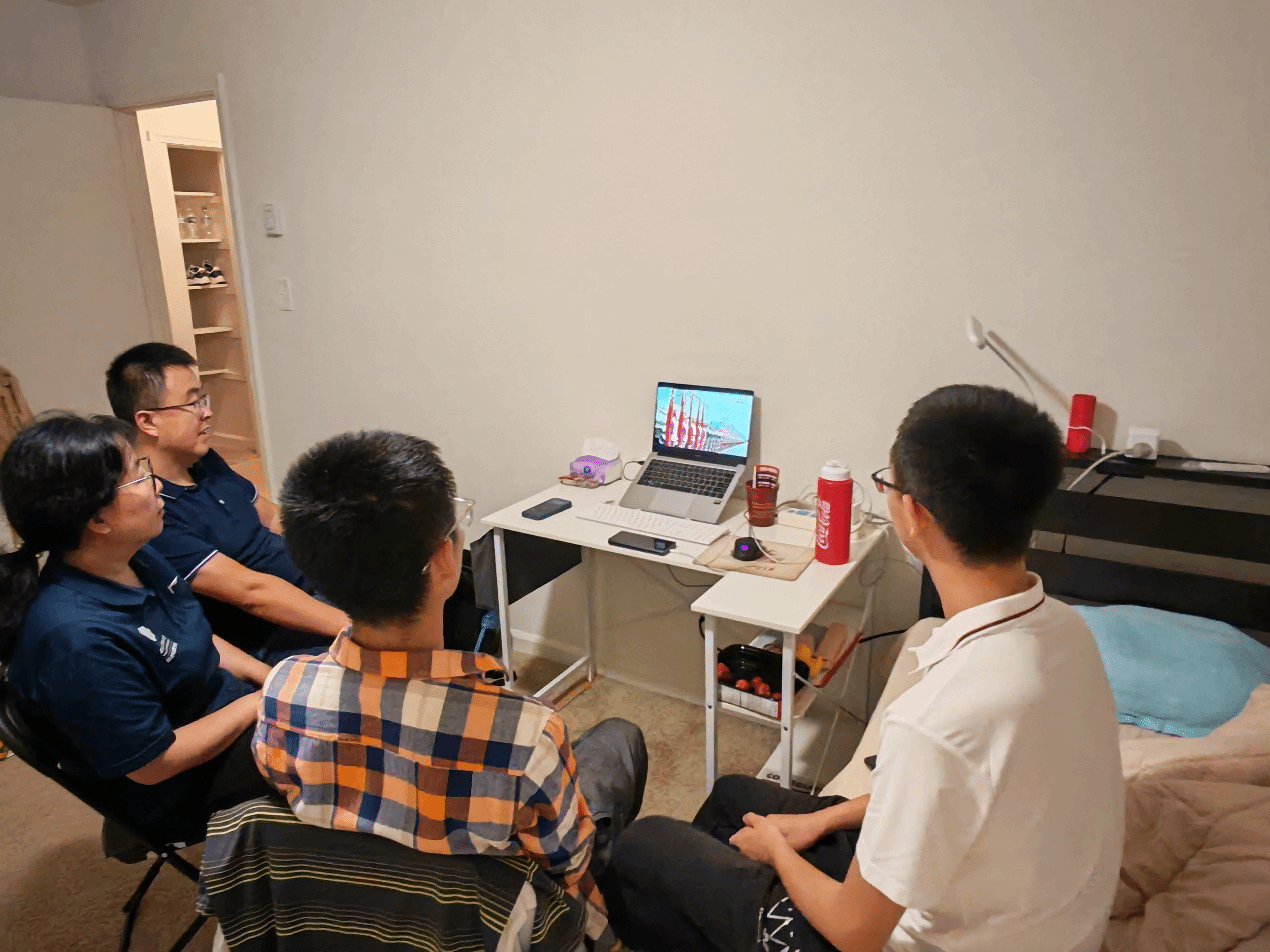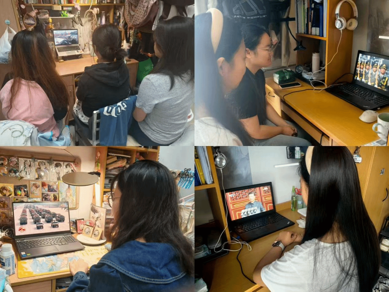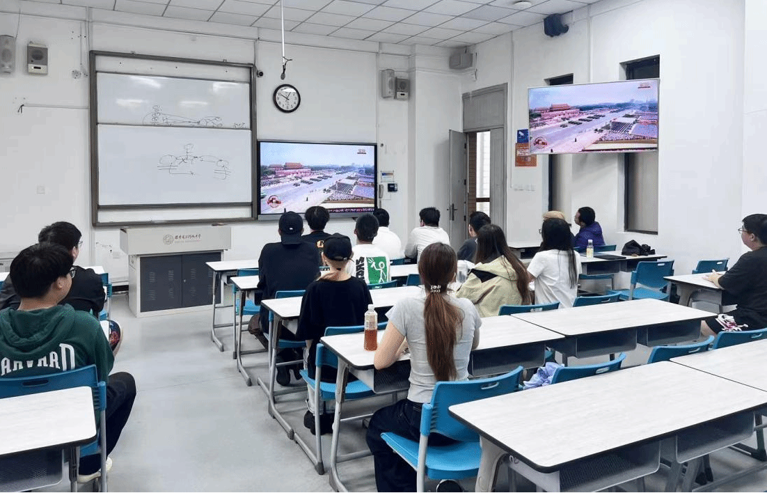 学院中美合作办学项目的师生正在美国弗吉尼亚理工大学求学。在当地时间晚间时分,师生也纷纷齐聚一堂,共同收看大会直播。李昔墨同学表示:“历史是不能、也不应该忘记的。现在的我们能远程观看阅兵并为之自豪,是因为80年前有无数先烈付出了我辈难以想象的代价。在美求学的一年中,我能接触到不同的思想、不同的技术、不同的文化,在这里吸收新知并把它带回祖国,并为革命先烈们所为之奋斗的未来添砖加瓦,就是缅怀先烈最好的方式。”