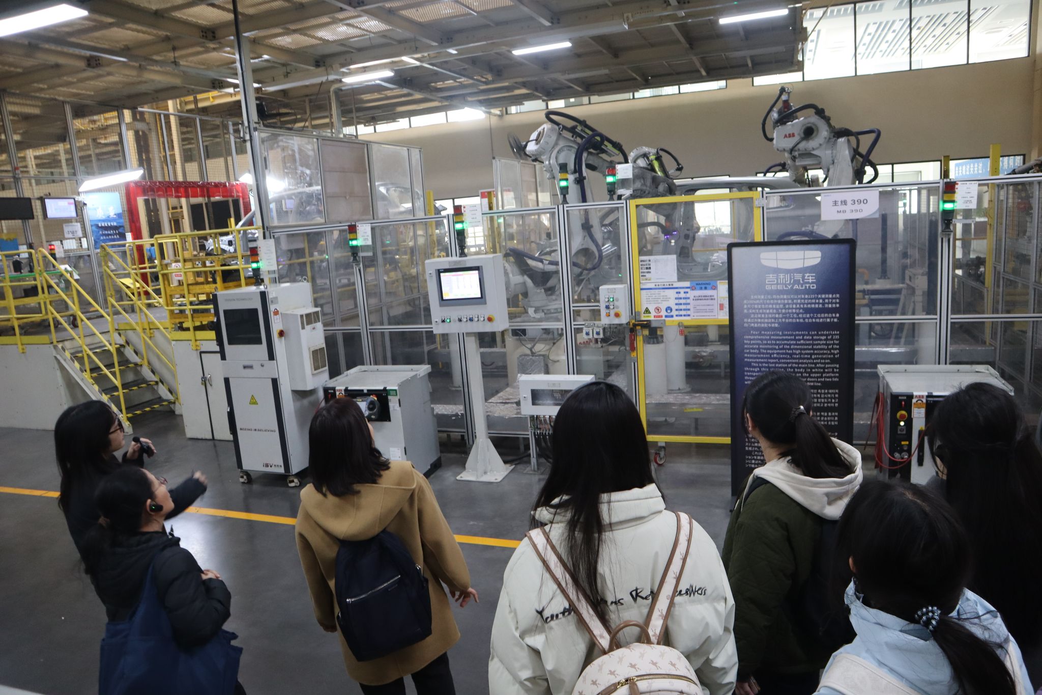 (通讯员:臧佳宁)为进一步提升人才培养质量,使本科教育教学贴近经济建设和社会发展实际,引导学生树立科学的学习观、就业观,2025年11月19日,yl6809永利YL集团张蔚虹教授和王燕妮教授带领新生导学团队来到西安高陵区吉利汽车生产基地进行研学实践。实地参观智能化汽车生产制造中的冲压、焊装、组装等关键流程,并与吉利汽车负责人交流汽车生产过程中的现代科学技术以及智慧管理方法。
