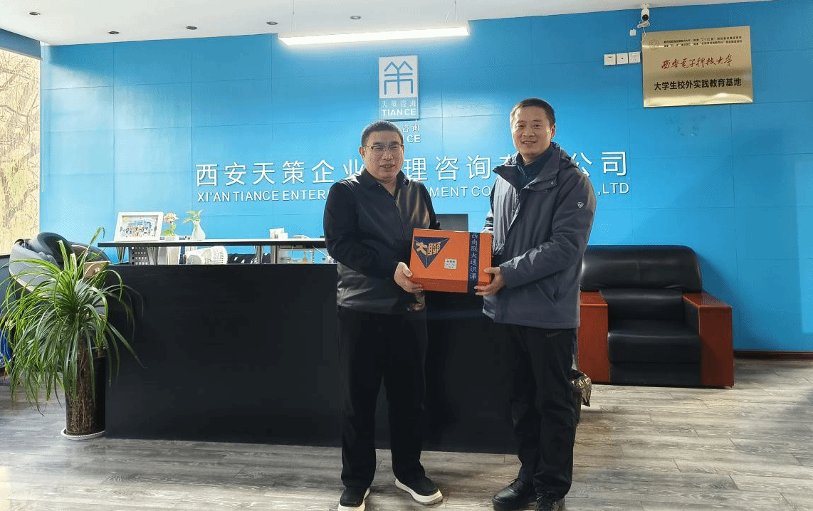 座谈会在庄重而富有传承意义的赠礼仪式中临近尾声。赵江老师代表此次参观的全体师生向天策公司赠送了一份承载着深厚历史与精神内涵的纪念品——“全心全意为人民服务”题词纪念。这份礼物不仅是对校企情谊的见证,更是将西电自诞生之初便烙印于血脉的红色基因与办学初心,赠予了作为同行者的企业伙伴。赵老师在赠礼时,再次对天策公司为本次活动提供的全方位支持与精心安排表达了诚挚感谢。他表示,题词所蕴含的“全心全意为人民服务”的精神,与新时代企业管理所追求的社会责任和价值创造内在相通,此次赠礼寓意着对校企双方在人才培养、服务社会道路上继续同心协力、铭记初心的美好期许。