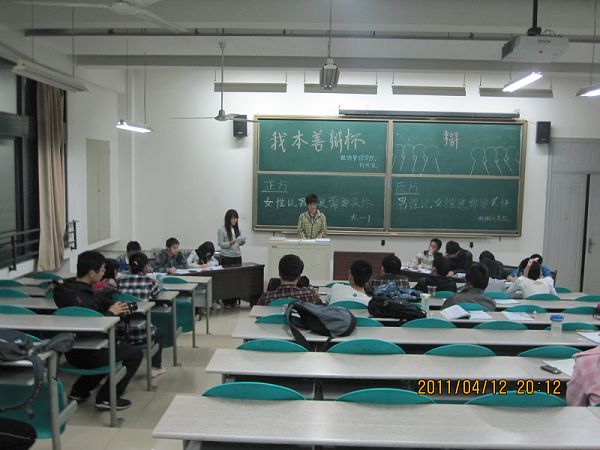 参加此次辩论赛的两支队伍分别来自061011班代表队和经管院科协代表队,现场虚无坐席。在主席介绍完到场评委后,双方就“女性比男性更需要关怀/男性比女性更需要关怀”这一辩题展开了别开生面的辩论。立论环节,双方一辩对各自所持观点进行了具体陈词并展开激烈争夺。正方从女性的生理、心理较脆弱,受到就业歧视等多方面论证己方观点;反方则强调男性所承担的责任大,压力大,“男儿有泪不轻弹”,排压途径少,据理力争。攻辩环节,双方唇枪舌剑,字字力争。自由辩论环节,双方运用数据,引例旁敲侧击,灵活论证,将整场比赛推向了高潮。虽然双方交锋点不多,但精彩程度并未到影响,双方辩友应变敏捷,辩驳有力,博得了在场观众的阵阵掌声。四辩总结陈词环节,双方均说理透彻,语言犀利,攻击对方漏洞。最终061011班代表队在本场异常精彩的辩论赛中获胜。