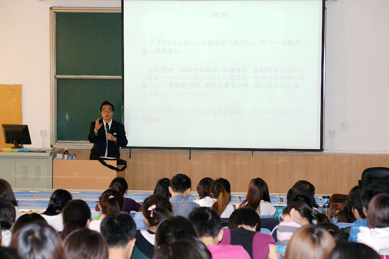 3日下午,龟谷教授在经济管理学院MBA会议室与我院教师进行座谈,双方就学术研究合作、合作出版、教师和研究生互访等做了进一步的沟通交流。随后,龟谷教授为我院师生作了题为“财政金融政策、政策性金融以及金融管制强化对金融体系安定化分析”的报告,就日本在次贷危机后为稳定其金融体系、刺激经济复苏而需要实施的混合性政策的主体框架,并对中国金融体系的风险防范提出了个人建议。报告会由我院副院长李华教授主持,共有教师以及研究生100余人参加了此次报告会。报告内容翔实,题材新颖,开阔了师生们的学术视野,受到大家的欢迎。