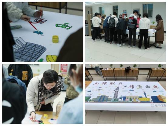 10月30日上午,经管院学生会举办的“九秩校庆,我为西电绘色彩”活动,在竹园2号楼大厅如期举行。展示在桌面上的是一幅巨大的画卷,礼仪广场的时钟塔正居C位,左侧主教学楼和逸夫图书馆端庄大气,右侧一字排开的博物馆、远望谷体育馆和图书馆气势恢宏。除了主体建筑外,卫星、望远镜、毛主席题字的石碑和信号塔等西电特色元素也点缀其间。