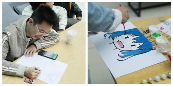 在为画卷上色的同时,活动组织者还鼓励大家积极创作为母校庆生。于是,一些同学拿起纸笔,将心中的奇思妙想描绘在画纸上,每一笔都倾注了心血和对母校美好的祝愿。