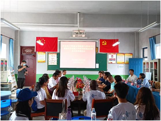 苏坊镇九年制学校校长何宝军介绍了学校近年取得的发展,表示在经管院帮扶下,苏坊镇的学生也享有了城市学生的教育。学校利用援建的“追梦”党建长廊营造浓郁的党史教育氛围,举办了两届青少年党校,得到上级教育部门的肯定。得益于体育运动基础设施完备,学校足球队、篮球队涌现出多名优秀学生运动员,屡获嘉奖。期待双方进一步加强合作,把基础教育做实做强。