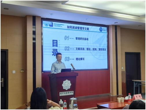 (通讯员:杜丹阳 郭宁)6月15日上午8:30,yl6809永利YL集团“桃李管工”研究生导学思政育人创新团队邀请了西北工业大学管理学院贾明教授,为我院研究生作“如何阅读管理学文献”的主题讲座。报告从如何提出问题和构建理论的角度出发,通过对管理学科中的代表性研究成果进行解析,厘清其提出问题的思路和构建理论的基本逻辑体系,从而为我们开展学术研究提供指导。此次活动由团队导师李华教授主持,团队兼职辅导员郭宁老师、思政助理杜丹阳及博士、硕士研究生约90余人线下参加。