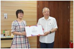 谢军占院长为出席仪式的中美班英语课程教师代表薛维、杨萍、李菁颁发了聘书。中美班英语课程教师都是长期在英语教学、培训项目一线的骨干,业务精湛、思想过硬,这支优秀的授课团队必将引领着中美班同学打下良好的语言基础,讲好中国故事。