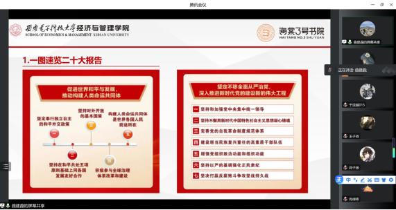(通讯员:班嘉欣 曲建晶)2022年10月16日上午,经管学院组织中美班学生集中观看了中国共产党第二十次全国代表大会开幕会。16日晚,中美班师生通过线上会议的方式举行了中美班主题班会。学院国际化事务负责人张卫莉、辅导员曲建晶就中国共产党第二十次全国代表大会的相关安排、党的二十大报告主要内容进行了中英文分享。