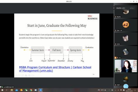 (通讯员:班嘉欣)10月30日晚,中美班主题班会以线上的方式展开。主讲人孙蕾副教授进行了大数据管理与应用专业相关职业分类和美国大学情况的分享,国际化事务负责人张卫莉,辅导员曲建晶以及中美班学生共同参会。