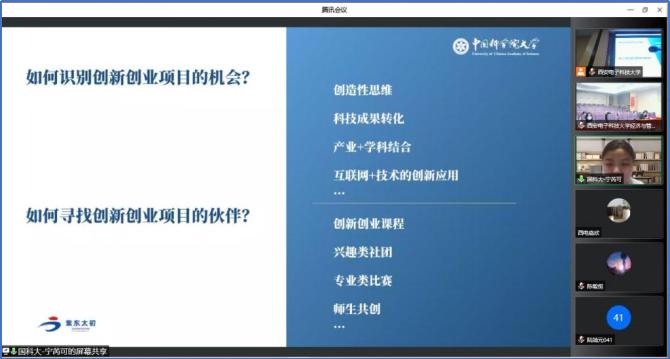 除此之外,来自中国科学院大学的宁芮可从目前所研究的项目出发给同学们展示了一个完整创新创业项目的发展过程,以实际应用为出发点为同学们就如何识别创新创业机会,以及如何寻找创新创业项目伙伴等问题做了详细解答。
