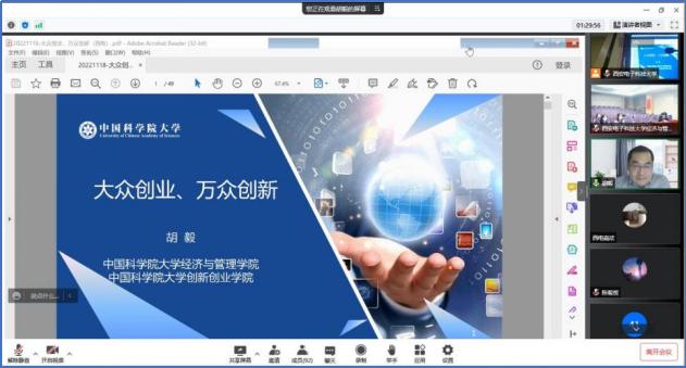 (通讯员:班嘉欣 窦友婍)2022年11月18日晚,yl6809永利YL集团国际化能力提升计划系列讲座顺利开展。本次讲座特邀中国科学院大学yl6809永利YL集团胡毅教授、西北大学经济管理学院安立仁教授为中美班同学做精彩的创新创业主题分享。yl6809永利YL集团副院长陈希教授出席并主持讲座,中美班全体学生、学院部分老师等近百名师生共同交流青年一代创新创业思维培养和能力提升发展之路。
