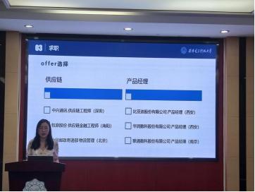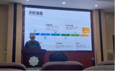 第五位上台的是陈墨浪,他结合自己的校招经验对同学们提出了很多值得注意的细节问题,比如签约时需要注意的六险二金的构成以及比例等。陈墨浪还强调大家要努力学习基础知识,只有在校期间学好专业知识,步入社会才能更好的以所学为国家建设输送西电智慧。