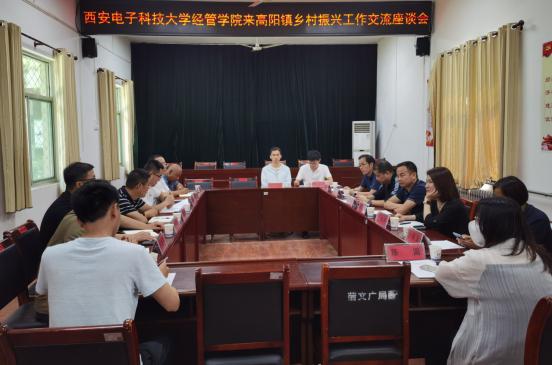 在高阳镇,学院与镇主要领导干部就学院电子商务专业发展与乡村振兴实践结合问题开展座谈交流。高阳镇党委书记李亮与学院一行人员深入交流,蒲城县司法局副局长万军军,高阳镇党委副书记王峰、武装部长程志平、副镇长张伦、水峪村党组织书记原建平、安家村党组织书记姚力田参加座谈。座谈会上,王峰介绍了高阳镇基本情况,原建平和姚力田分别介绍了水峪村和安家村关于乡村振兴过程中取得的优秀经验及目前面临的主要困难。李耀平在致辞中指出,本次带队调研,了解高阳镇实际困难,把学院的专业优势带来,提供专业建议,为乡村振兴贡献西电经管力量。双方围绕苹果产业的销售问题进行了深入交流。张宗明和黄丽娟从自身专业角度给予了苹果产业发展建议,指出下一步可探索塑造品牌形象,讲好品牌故事,通过培育电子商务运营的代表性人物带动农户聚集电商平台等可行性建议。随后,一行人员参观了高阳镇“联合党委+”产业园、水峪村“支部+”产业园、高阳镇“纳米小镇”和中心校等。