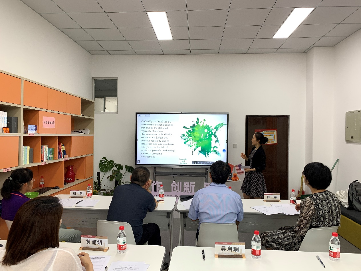 吴启瑞、杜黎和王世巍三位老师结合课程教学质量标准,围绕课程概述、课程设计思路、教学方法和创新特色等四个方面,先后对中西戏剧美学以及概率论与数理统计两门中美班课程进行了10分钟的说课,详细介绍了各自的课程设计,并回答专家们提出的问题。其中,吴启瑞和杜黎进行线下说课,王世巍进行线上说课。