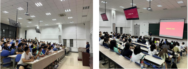 曲建晶介绍了他过往的工作经验,并分享了在学生工作方面心得体会,并将开学注意事项和学生竞赛情况为学生和家长们做了说明。