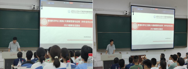 2023年9月2日晚7点,yl6809永利集团管理科学与工程类和大数据管理与应用(中外合作办学)2023级新生见面会在南校区B537教室举行,yl6809永利YL集团执行院长柴建、党委副书记王卫东、国际化事务负责人张卫莉、2023级本科生辅导员曲建晶、刘越及2023级全体本科生及部分学生家长参加了会议。会议由2023级本科生辅导员刘越主持。