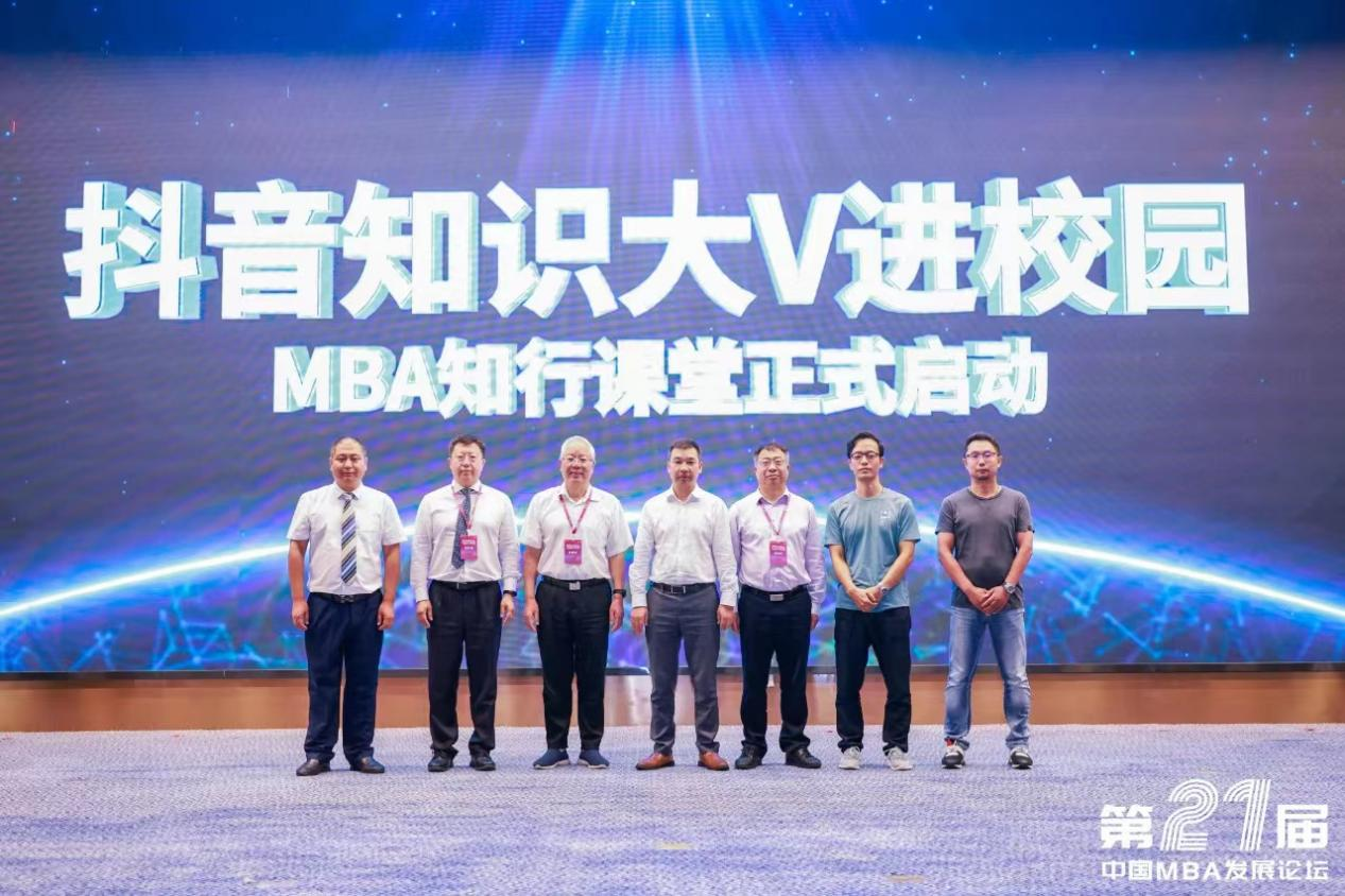上午论坛中,谢军占代表学校应邀出席《抖音知识大V进校园 MBA知行课堂》公益活动启动仪式。当晚颁奖典礼及闭幕式,我校师生喜获2022年度中国MBA培养院校领航奖,2022年度中国MBA十大优秀联合会,2022年度中国MBA十大精英人物,2022年度中国MBA校友创新创业新星,2021-2023年度中国MBA新秀100等多项殊荣。