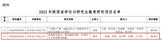 为助力陕西省研究生教育高质量发展,推动研究生教育理论研究及创新,陕西省学位与研究生教育研究中心于今年5月组织开展2023年陕西省学位与研究生教育研究项目申报工作。经学院审核、学校推荐、专家盲审、会议评审等多重把关,立项结果已于近日公布。由我院陈希教授主持申报的研究生教改项目《强基固本驱动,聚经融管创新,经管类人才培养模式构建》获批立项。