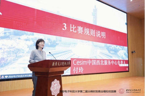 开幕式的议程精彩纷呈。 首先,谢永平副院长发表了致辞,强调商业精英挑战赛的重要性,鼓励学生积极参与;接着,刘毅主任发表了鼓舞人心的致辞,鼓励学生充分发挥创新潜力;Cesim 中国区副总经理尚晓霞女士通过线上方式发表了激励人心的致辞,分享了Cesim在商业领域的经验和见解;仪式的亮点之一是全国赛获奖者稳操胜券队的队长霍佳禾,分享了他们在比赛中的经验和成功之道,为在座的学生们提供了宝贵的经验参考。 接下来,付玲女士详细介绍了比赛规则,为参赛选手提供了必要的指导。