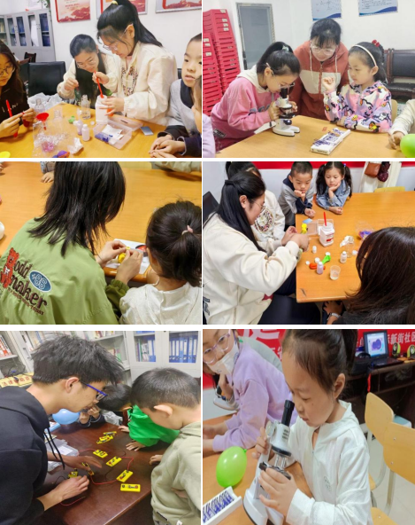 本次活动中,志愿者们通过生动的语言和互动向大家讲解了有关于货币的知识,让小朋友们对货币的产生以及发展有了初步的了解。“原来我们的钱是这么来的呀!”在听完志愿者的讲解后,一个小朋友激动地说道。随后,志愿者们带领小朋友体验了有趣的科学实验,如神奇的显微镜、简单电路的实现、气球实验等,并用通俗易懂的语言为好奇的小朋友们讲解了光的折射、串联与并联电路、化学还原反应、酸碱中和反应等科学知识。孩子们听讲认真、兴趣高涨,生动活泼的讲解更是启发在场的小朋友纷纷主动举手回答问题,现场气氛十分活跃。