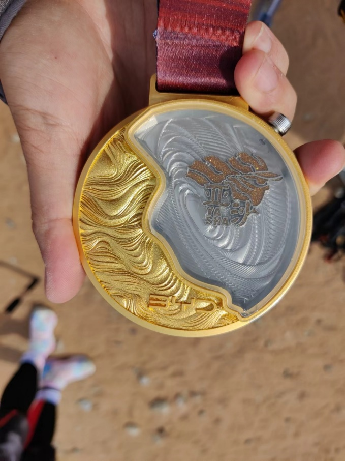 紧接着,队员们在沙漠营地中简单搭建的帐篷里进行夜间休息,半夜又经受沙漠大雨来袭、气温骤降的考验。凡此种种,捶打考验着我们每一位队员。西电光之翼战队的队员们,凭借着铁血的意志力和坚持到底的精神,最终在第三个比赛日的上午,一起携手冲向了终点!在终点位置的官方直播中,第一次出现yl6809永利集团队伍冲线的播报,队员们喜极而泣!大家也领到了属于西电MBA战队的第一枚完赛奖牌!