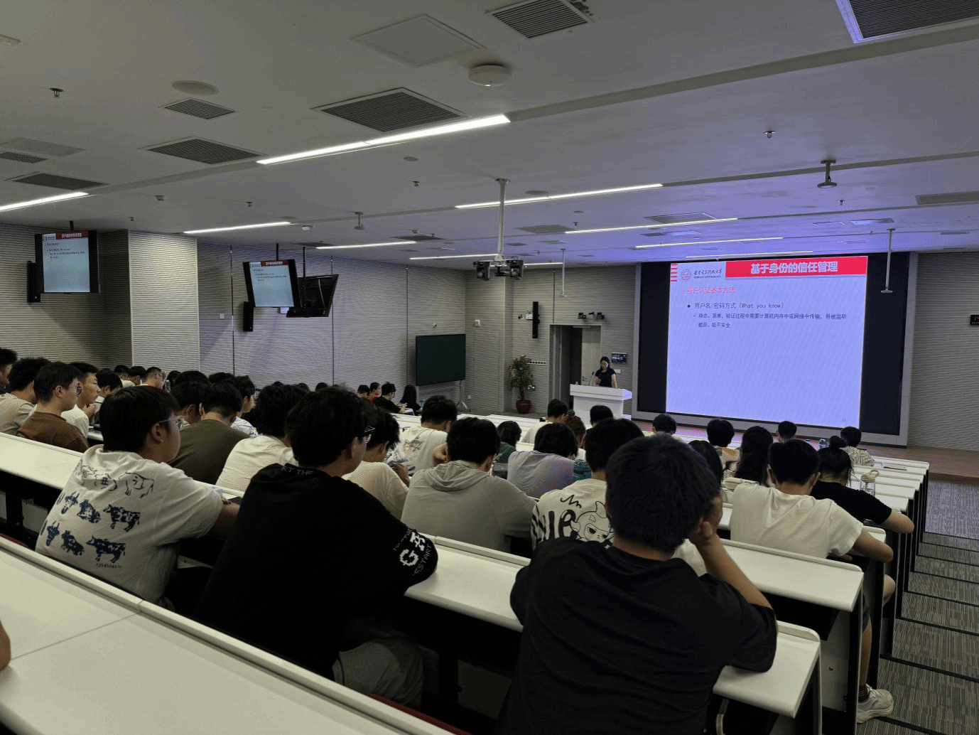 数算可信融合中心的李红宁老师为同学们带来了《网络安全与信任管理》课程。同学们了解到了数字化时代网络信任的定义、零信任安全和区块链技术等概念,认识到了网络空间信任管理愈发凸显的重要性。李老师表示,对于同学们而言,一些专业性强的知识目前尚难以完全理解,希望自己的授课可以在大家心中种下一颗种子,来日能够生根发芽,培育更多网络安全领域的人才。