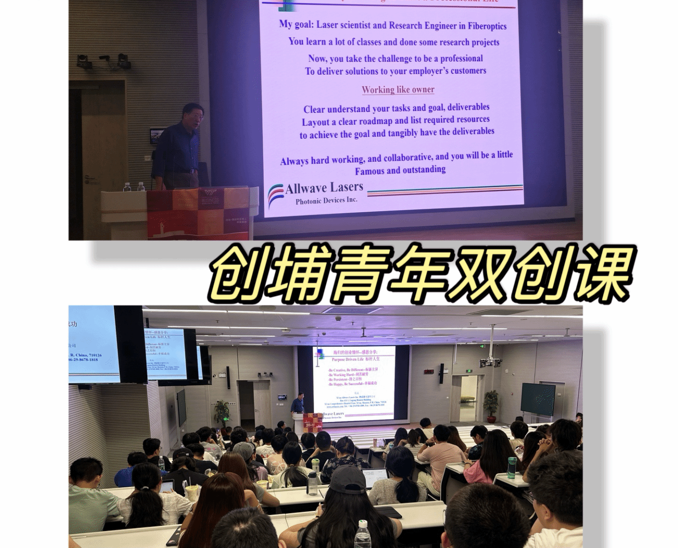 在《创埔青年双创课》中,西安澳威激光器件有限公司总裁石元先生分享了自己的职业生涯。石元先生提到,自己作为恢复高考后的首批大学生,十分感谢国家提供给自己珍贵的留学机会,中美班同学们一定要怀着对知识和技术的敬畏,拓宽自己的眼界。他表示,同学们要保持好奇心,持续学习,先有深度,之后更要有宽度;坚持把握细节,构建自己的职场竞争力反馈体系;培养专业技能、管理能力、市场能力、行业洞察能力和自我超越能力。他的分享,特别结合了很多的故事来展开,有专业发展的内容,有职业生涯的忠告,体现了谦逊、包容的老一辈学者关爱国家栋梁成长的期待,极大地感染了在场师生。