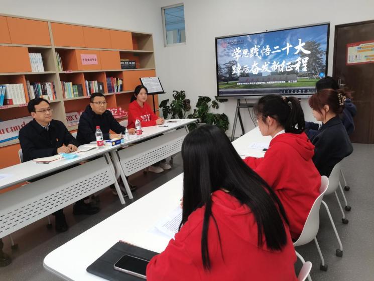 最后,林松涛副校长向支部同志传达了党的二十大精神。他强调,党的二十大胜利召开,对全党全国各族人民迈上全面建设社会主义现代化国家新征程,向第二个百年奋斗目标进军具有十分重大意义,支部全体党员要自觉用党的二十大精神统一思想和行动,深刻领悟“两个确立”的决定性意义,增强“四个意识”、坚定“四个自信”、做到“两个维护”,为全面建设社会主义现代化国家而努力奋斗。要深刻认识党的二十大的重大意义并认真学习贯彻,学出自信、坚定信仰、领会青年的重要责任、能堪当时代重任,坚定不移跟党走,要以实际行动践行自己的入党誓词。