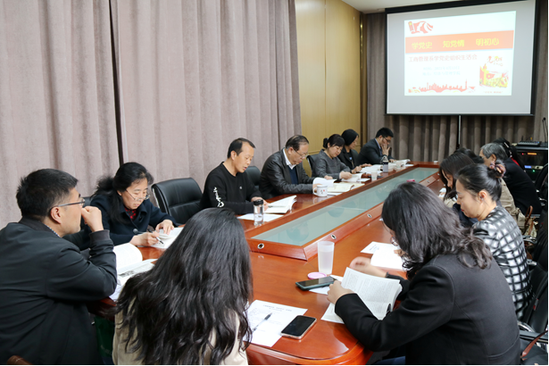 首届校级教学名师赵文平同志领学了《中国共产党简史》第二章“掀起土地革命的风暴”,他带领大家回顾了中国共产党从成长到成熟的几个转折点:八七会议、古田会议、遵义会议和统一战线。赵老师结合讲授的 “战略管理”课程指出,在这些重大的转折点中,中国共产党领导集体做出的这些力挽狂澜的决策是“战略管理”的经典案例,体现了中国共产党具有卓越的战略眼光和科学预见的能力。在课堂上,由专业课老师采用润物细无声的方式讲党史,学生们有兴趣、爱听,做到了思政进课堂,滋润学生心田。