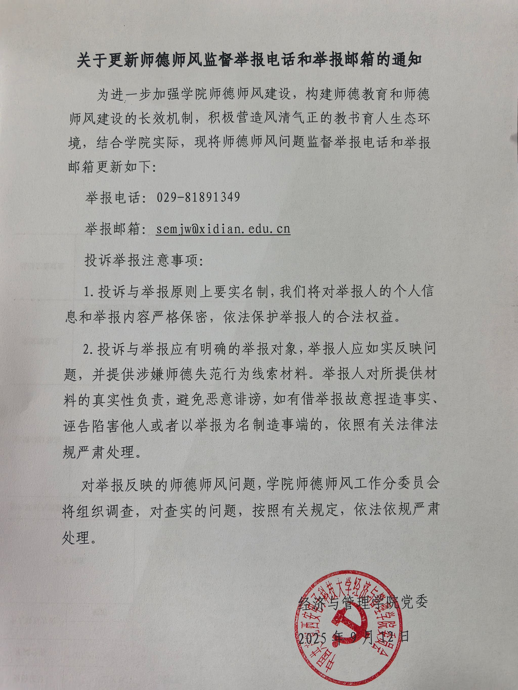 关于更新师德师风监督举报电话和举报邮箱的通知