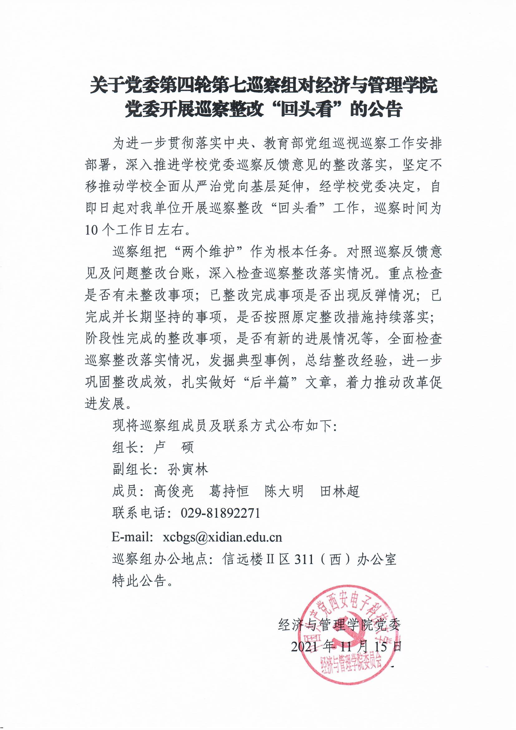 关于党委第四轮第七巡察组对yl6809永利YL集团党委开展巡察整政“回头看”的公告