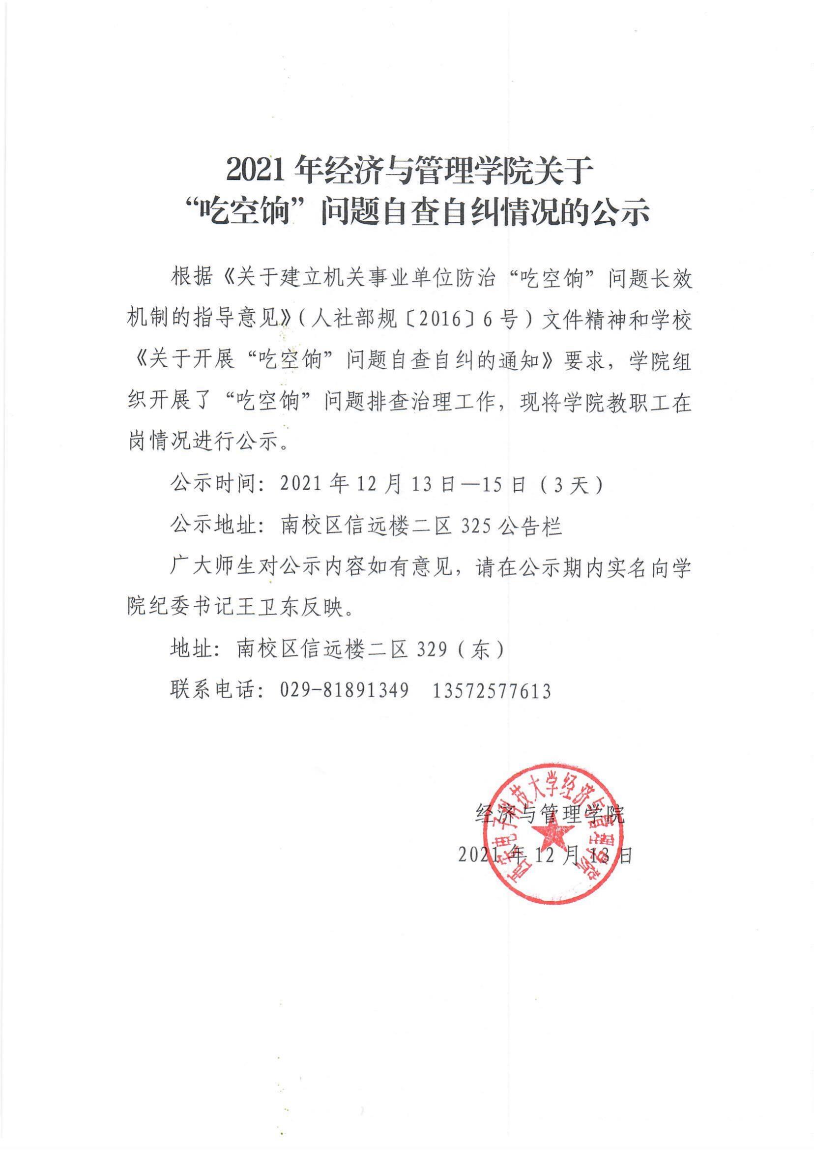 2021年yl6809永利YL集团关于“吃空饷”问题自查自纠情况的公示