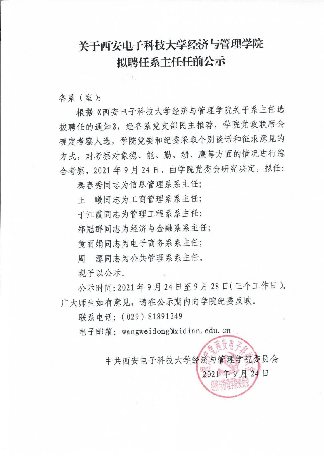 关于yl6809永利YL集团拟聘任系主任任前公示