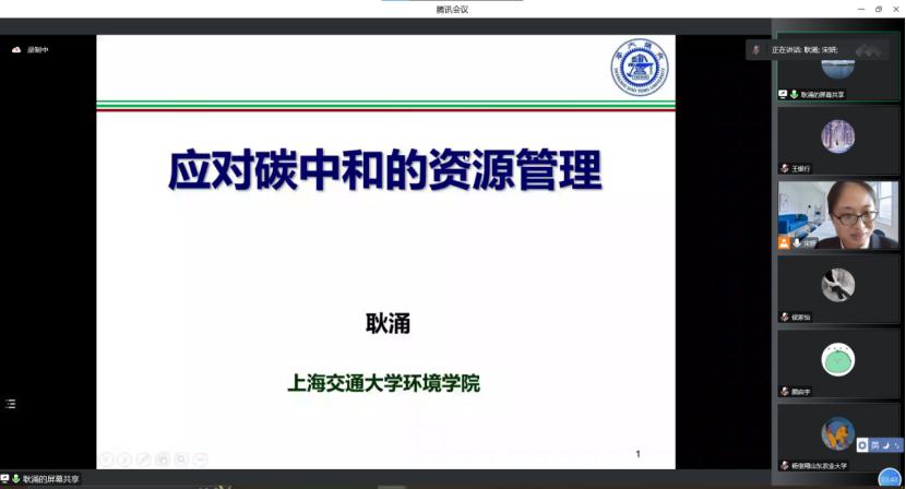 (通讯员:王银行 张鹭)20221017日下午,我院应用经济学科举办了第五期能源与环境研究前沿论坛,论坛邀请到上海交通大学环境学院教授、国家级人才、国务院特殊津贴获得者耿涌教授作为主讲嘉宾。通过腾讯会议在线平台,耿涌教授作了题为“应对碳中和的资源管理”的学术报告,线上参会人数90余人,参会人员包括来自清华大学、山东大学、中国矿业大学、西安理工大学、山东农业大学等多所友校的老师和同学。