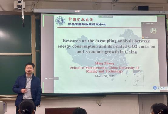 (通讯员:姬梦婷)2023年3月31日上午,我院应用经济学科举办了第七期能源与环境研究前沿论坛,论坛邀请到中国矿业大学经济管理学院教授、博士生导师张明教授作为主讲嘉宾。通过线下和腾讯会议在线平台,张明教授作了题为“能源相关的二氧化碳排放与经济发展脱钩关系研究”的学术报告,线下参会师生30余人,线上参会师生100余人。报告会上,张明教授聚焦“能源相关的二氧化碳排放与经济发展脱钩关系研究”。首先,介绍了指数分...