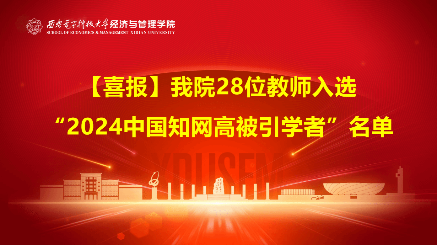 (通讯员 王越)近日,中国知网下属的中国科学文献计量评价研究中心基于中国知网收录的国内学术成果,首次开展学者学术影响力客观评价,遴选了“2024中国知网高被引学者”名单,我院28位教师入选2024中国知网高被引学者。其中,柴建、秦春秀、张雪、李慧、马续补入选中国知网高被引学者Top1%;艾时钟、杜荣、李华、王方、温小霓、郑冠群、郑耀群、张晓、杜跃平、石纯来、王林雪、王燕妮、谢永平、颜静、杨东、陈希、窦永香、王佳敏、...